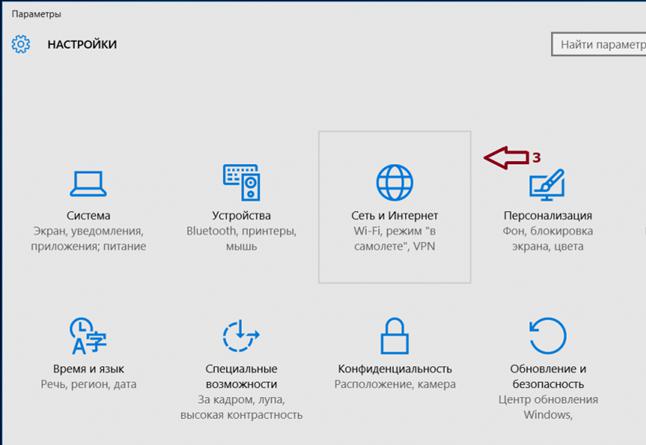 В появившемся окне выберите пункт «Сеть и Интернет»: